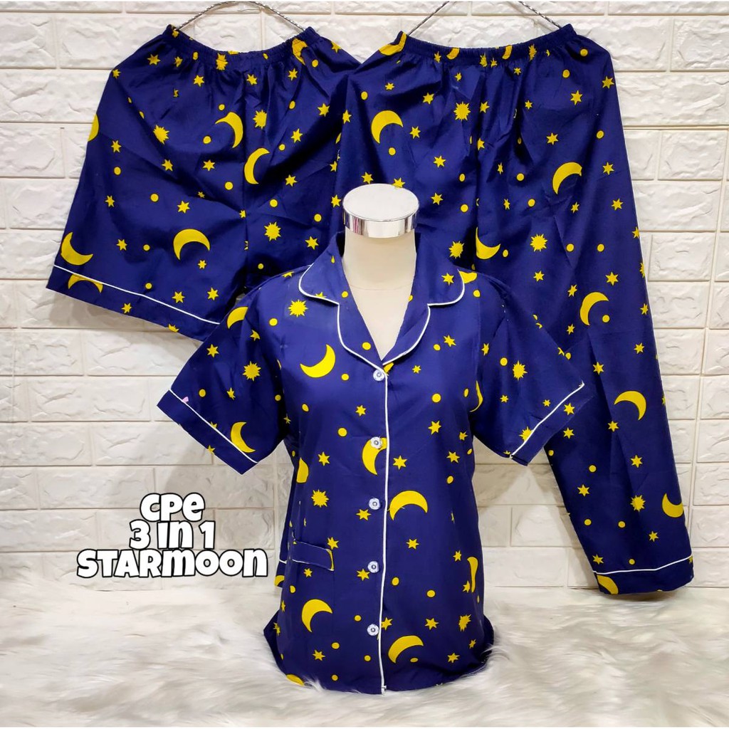 Capuci Piyama Cp 3 In 1 Motif Starmon Star Moon Bulan Bintang Piama Pajamas Baju Tidur Sleepwear Lazada Indonesia
