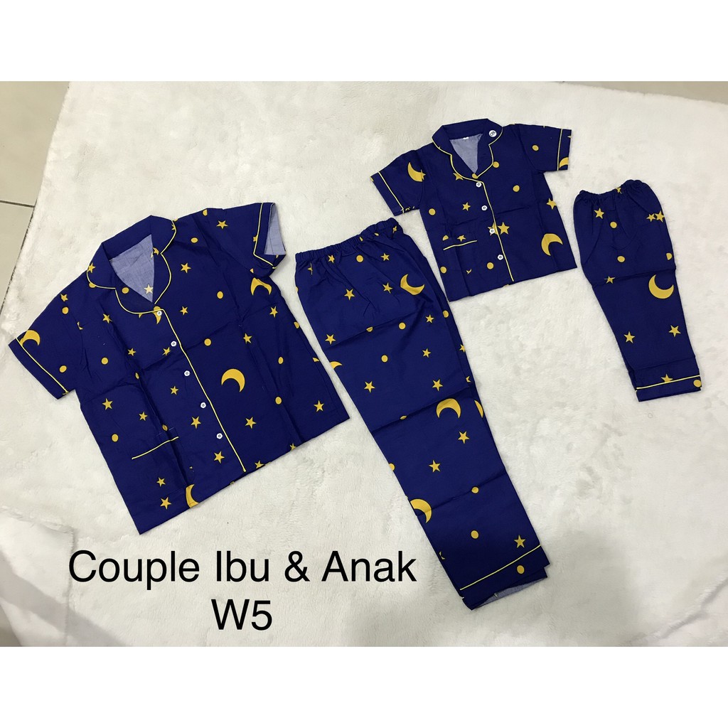 Baju Tidur Keluarga Kembar Couple Motif Bulan Bintang Bub1 Celana Panjang Cp Bahan Katun Adem Shopee Indonesia